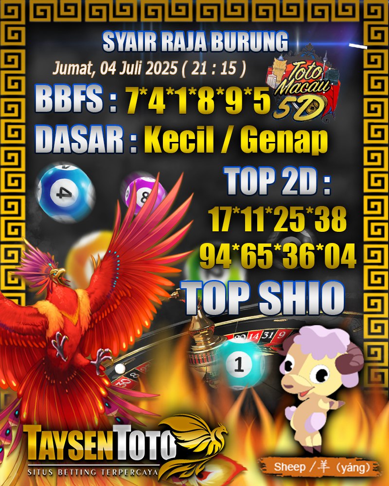 Syair Raja Burung Toto Macau 5D Hari Ini Jumat, 04 Juli 2025 | 21 : 15 WIB