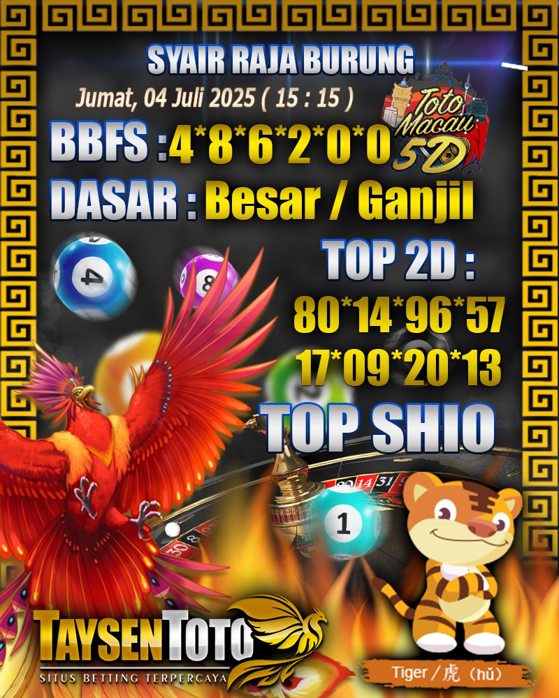 Syair Raja Burung Toto Macau 5D Hari Ini Jumat, 04 Juli 2025 | 15 : 15 WIB