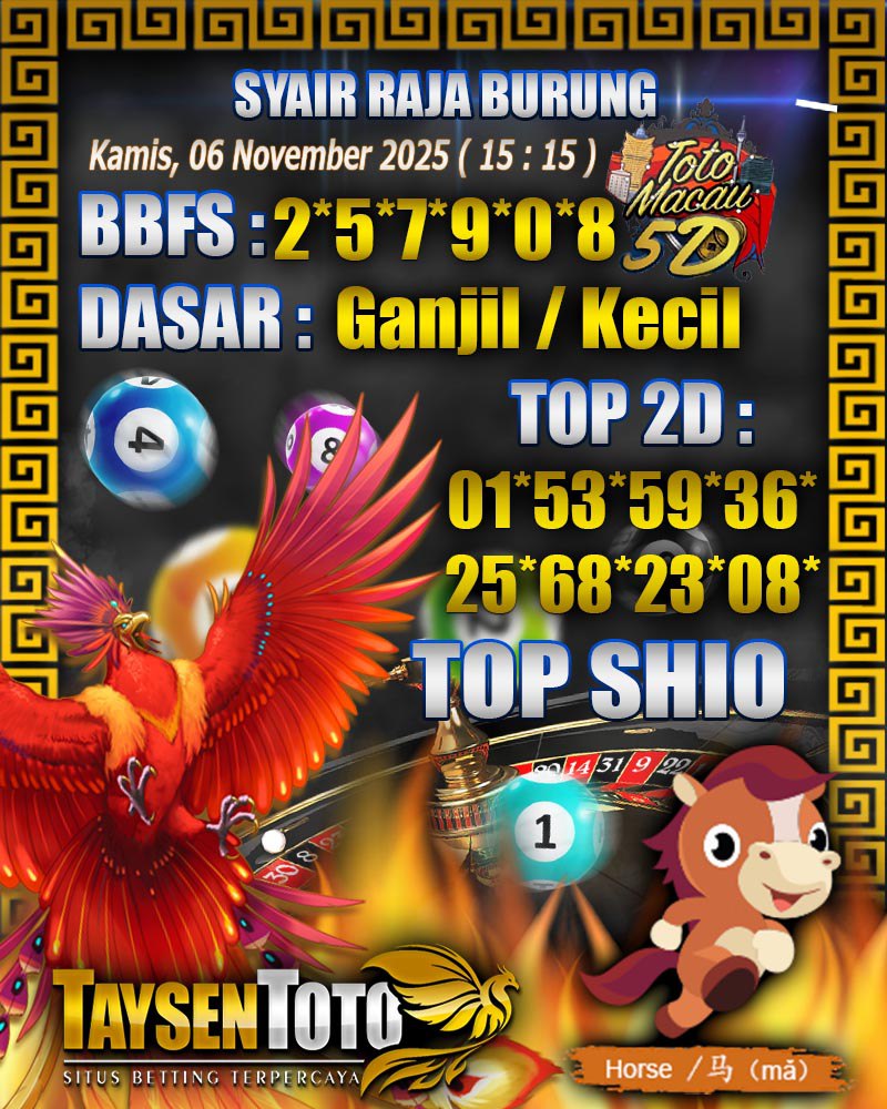 Syair Raja Burung Toto Macau 5D Hari Ini Kamis, 06 November 2025| 15 : 15 WIB