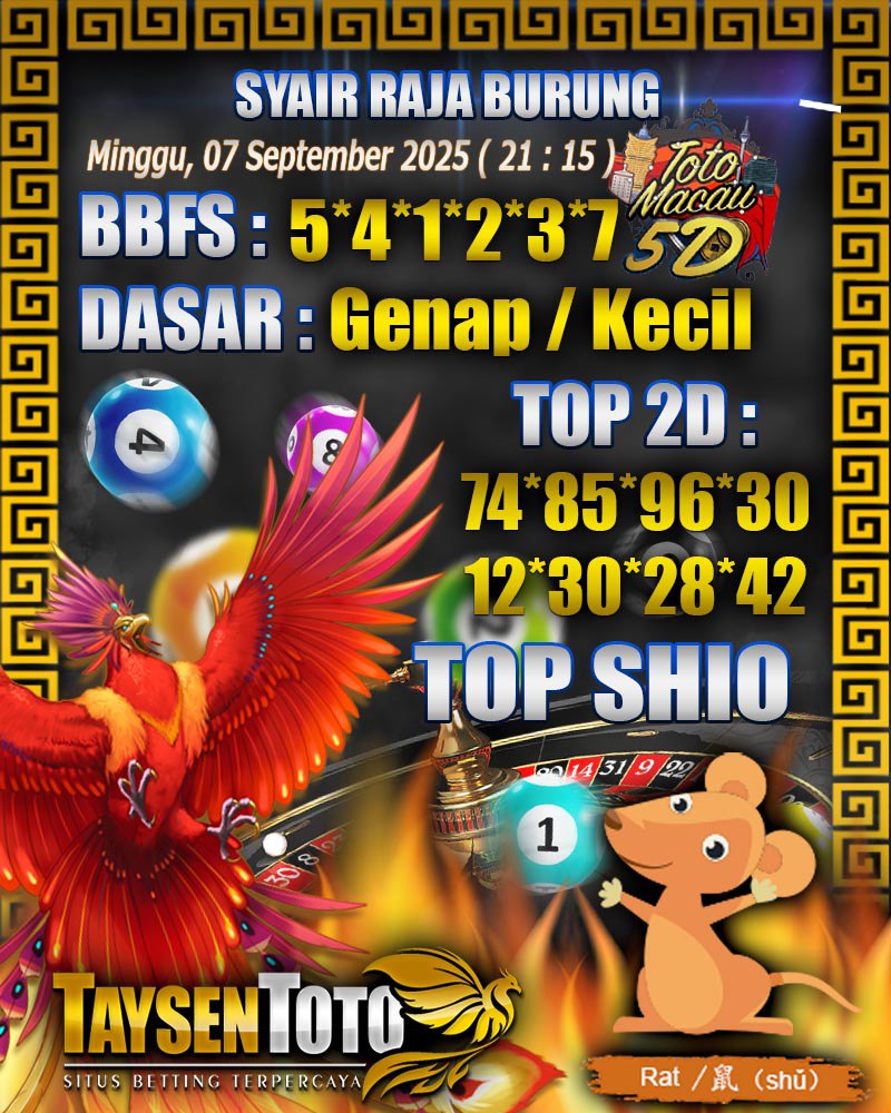 Syair Raja Burung Toto Macau 5D Hari Ini Minggu, 07 September 2025 | 21 : 15 WIB