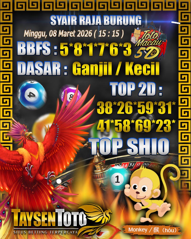 Syair Raja Burung Toto Macau 5D Hari Ini Minggu, 08 Maret 2026| 15 : 15 WIB