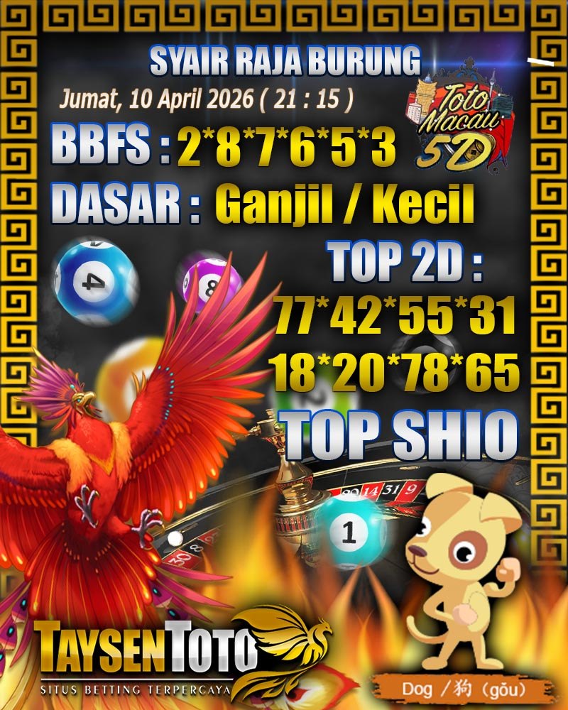 Syair Raja Burung Toto Macau 5D Hari Ini Jumat, 10 April 2026| 21 : 15 WIB
