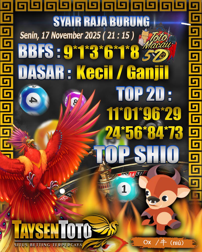 Syair Raja Burung Toto Macau 5D Hari Ini Senin, 17 November 2025| 21 : 15 WIB