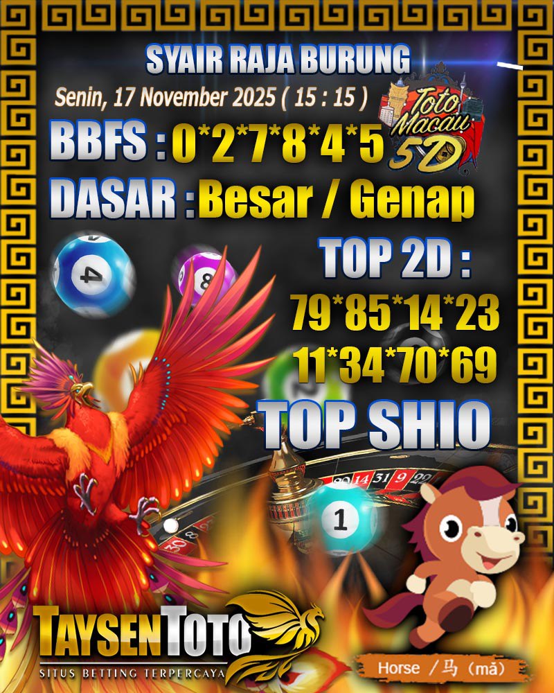 Syair Raja Burung Toto Macau 5D Hari Ini Senin, 17 November 2025| 15 : 15 WIB