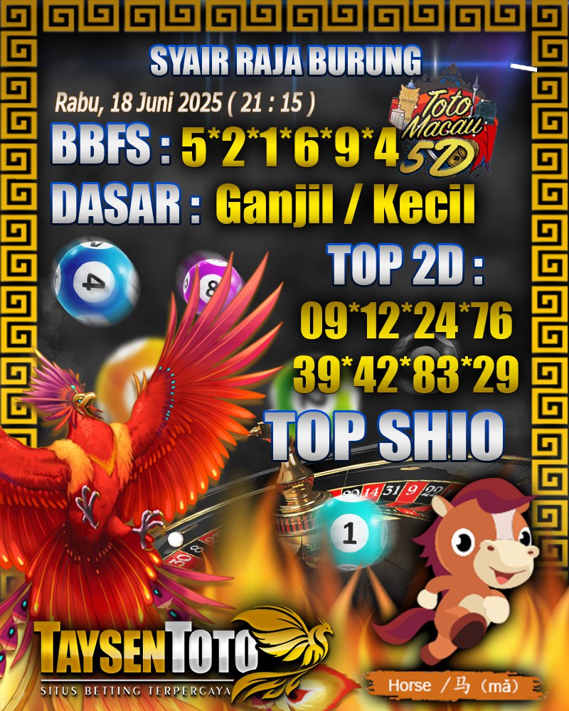 Syair Raja Burung Toto Macau 5D Hari Ini Rabu, 18 Juni 2025 | 21 : 15 WIB