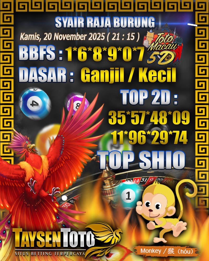 Syair Raja Burung Toto Macau 5D Hari Ini Kamis, 20 November 2025| 21 : 15 WIB