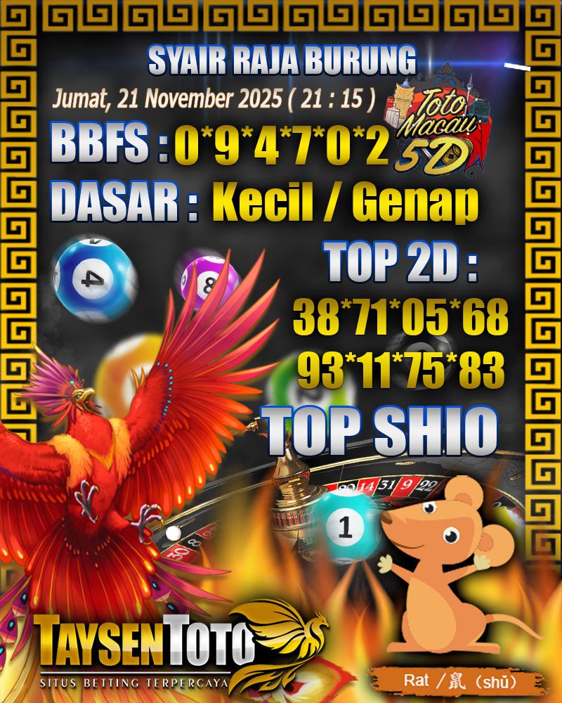 Syair Raja Burung Toto Macau 5D Hari Ini Jumat, 21 November 2025| 21 : 15 WIB
