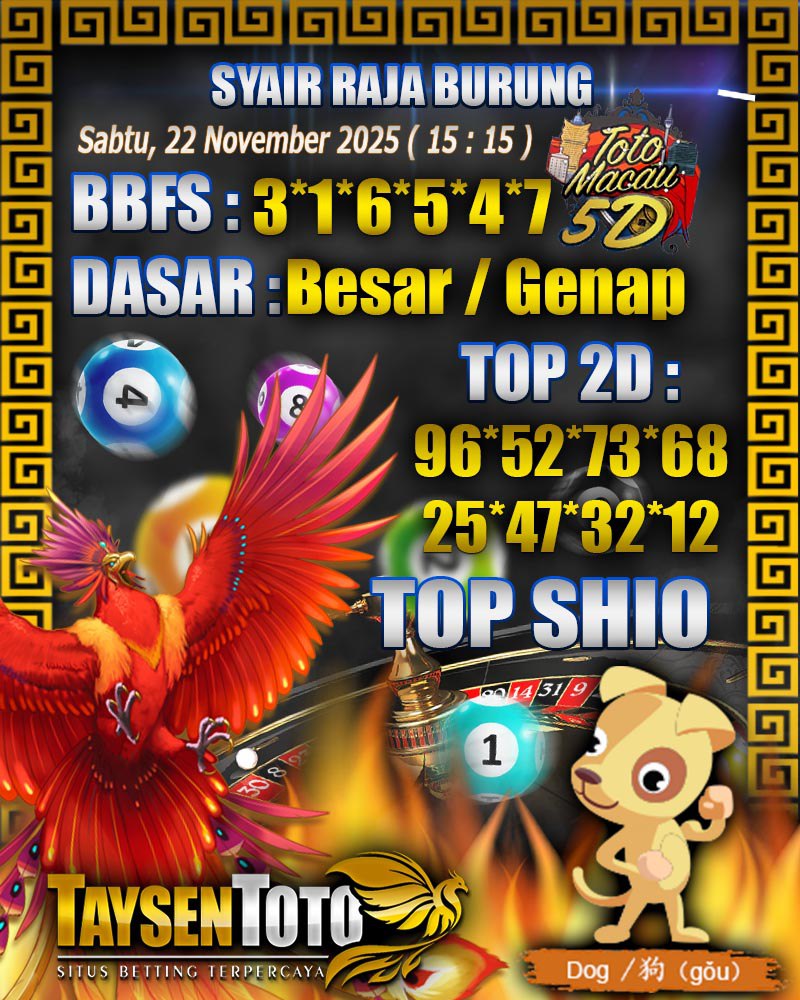 Syair Raja Burung Toto Macau 5D Hari Ini Sabtu, 22 November 2025| 15 : 15 WIB