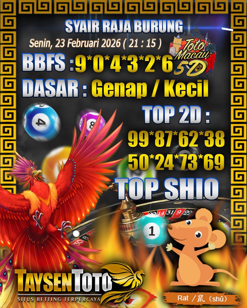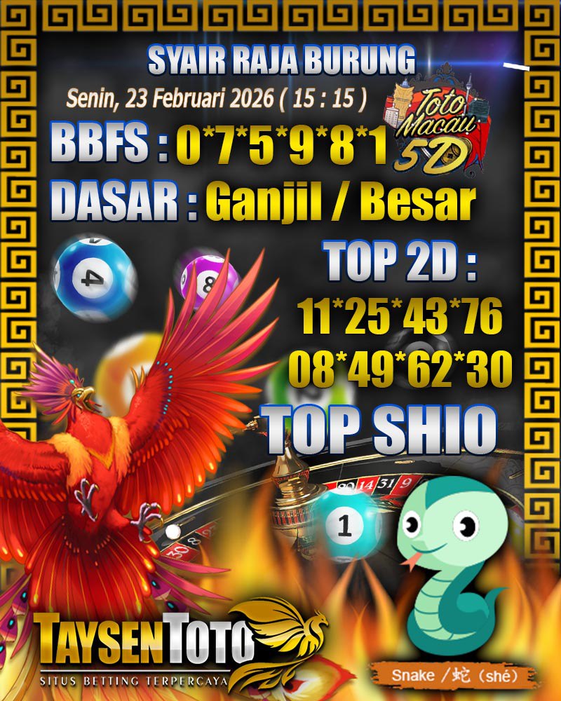 Syair Raja Burung Toto Macau 5D Hari Ini Senin, 23 Februari 2026| 21 : 15 WIB