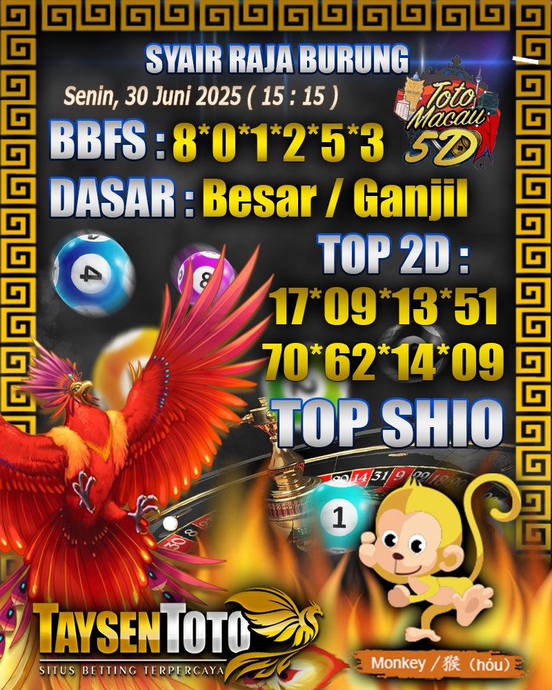 Syair Raja Burung Toto Macau 5D Hari Ini Senin, 30 Juni 2025 | 15 : 15 WIB