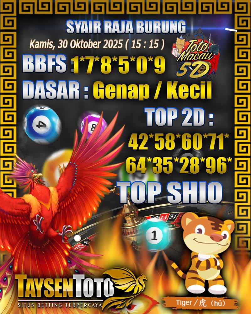 Syair Raja Burung Toto Macau 5D Hari Ini Kamis, 30 Oktober 2025| 21 : 15 WIB