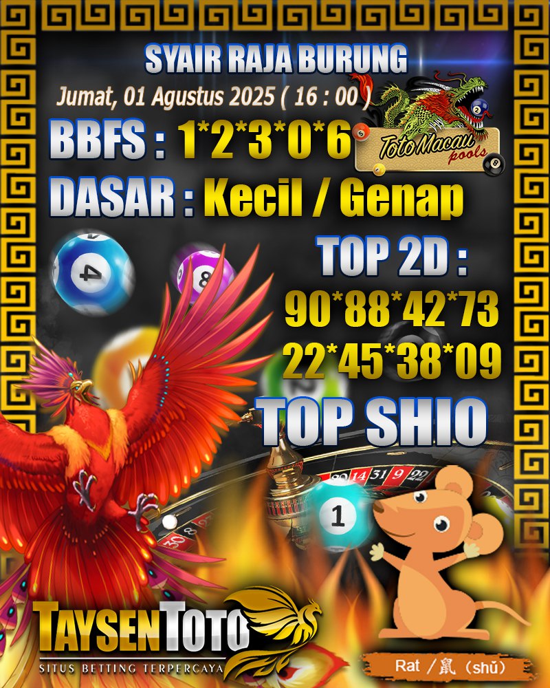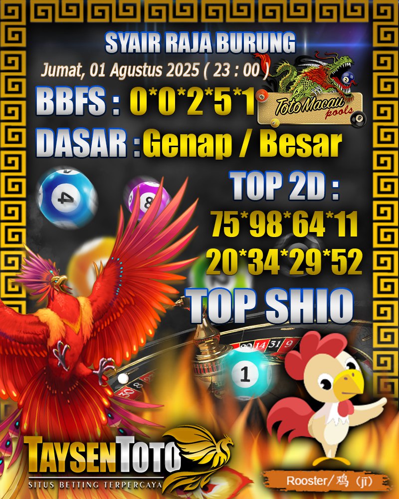 Syair Raja Burung Toto Macau Hari, Jumat, 01 Agustus 2025| 13 : 00 WIB