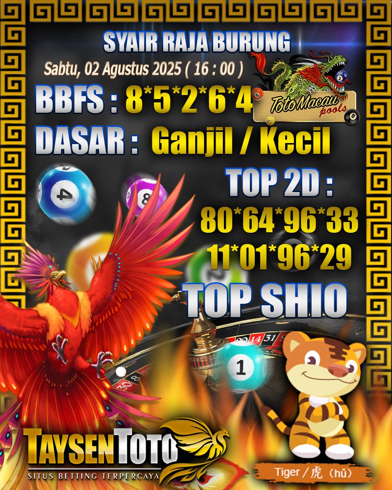 Syair Raja Burung Toto Macau Hari, Sabtu, 02 Agustus 2025| 16 : 00 WIB