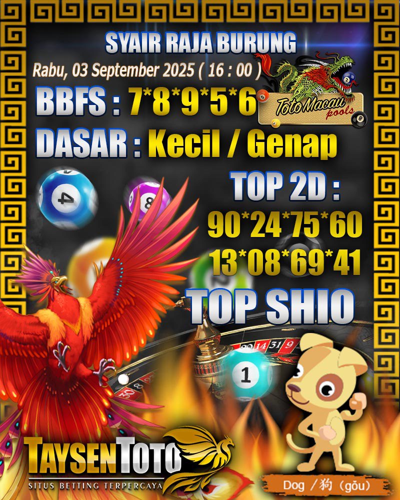 Syair Raja Burung Toto Macau Hari Rabu, 03 September 2025| 16 : 00 WIB