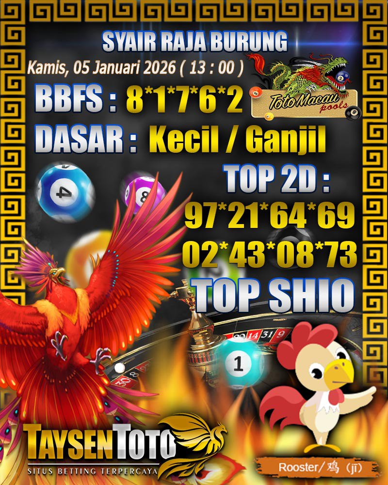 Syair Raja Burung Toto Macau Hari Kamis, 05 Februari 2026| 13 : 00 WIB