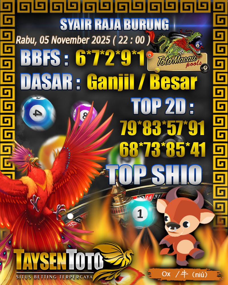 Syair Raja Burung Toto Macau Hari Rabu, 05 November 2025| 13 : 00 WIB