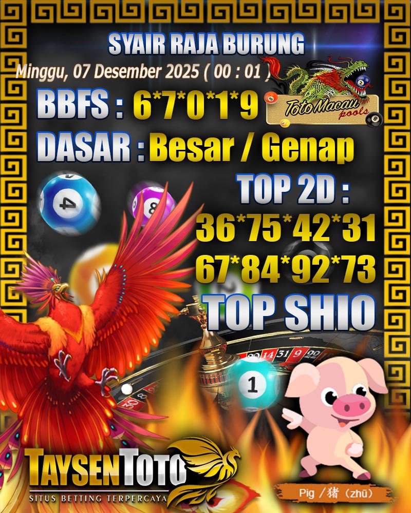 Syair Raja Burung Toto Macau Hari Minggu, 07 Desember 2025| 00 : 01 WIB