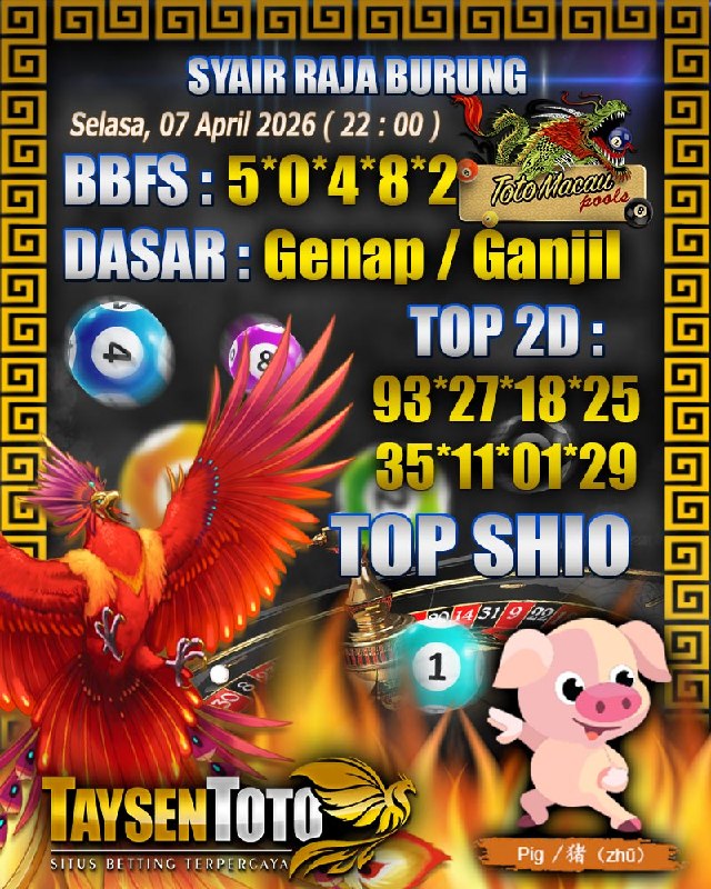 Syair Raja Burung Toto Macau Hari Selasa, 07 April 2026| 22 : 00 WIB