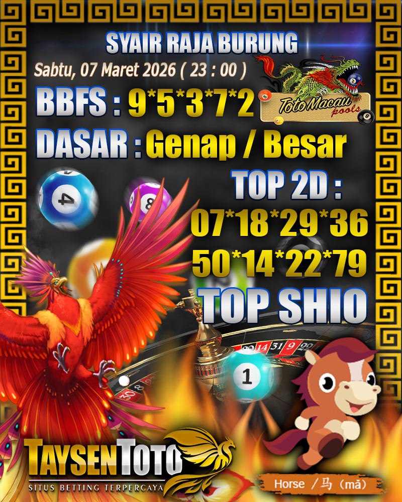 Syair Raja Burung Toto Macau Hari Sabtu, 07 Maret 2026| 23 : 00 WIB