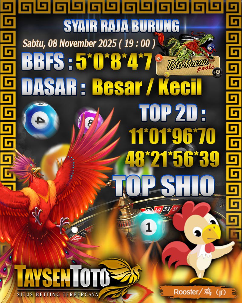 Syair Raja Burung Toto Macau Hari Sabtu, 08 November 2025| 23 : 00 WIB