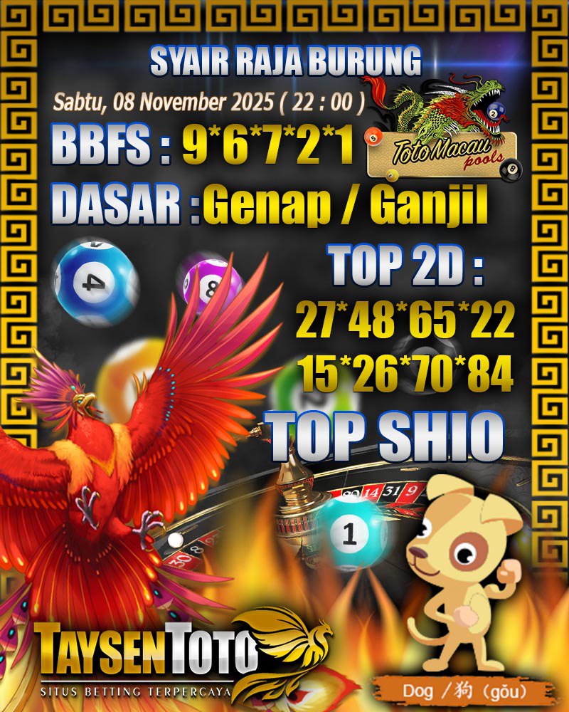 Syair Raja Burung Toto Macau Hari Sabtu, 08 November 2025| 22 : 00 WIB
