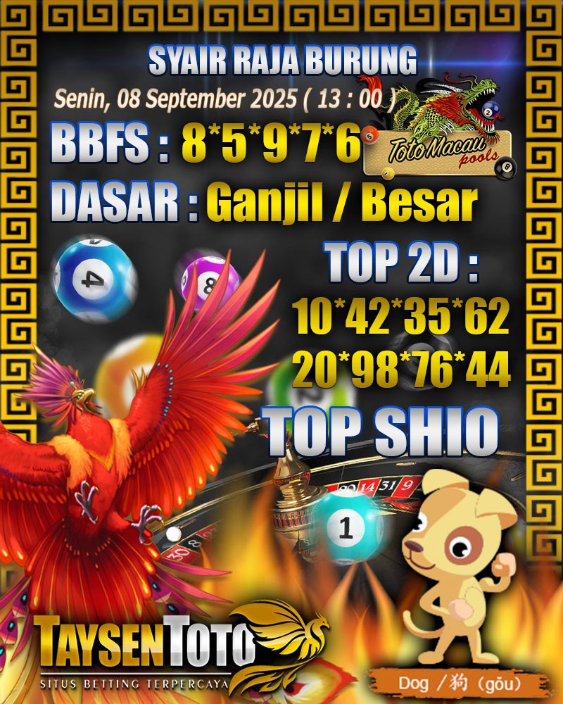 Syair Raja Burung Toto Macau Hari Senin, 08 September 2025| 13 : 00 WIB