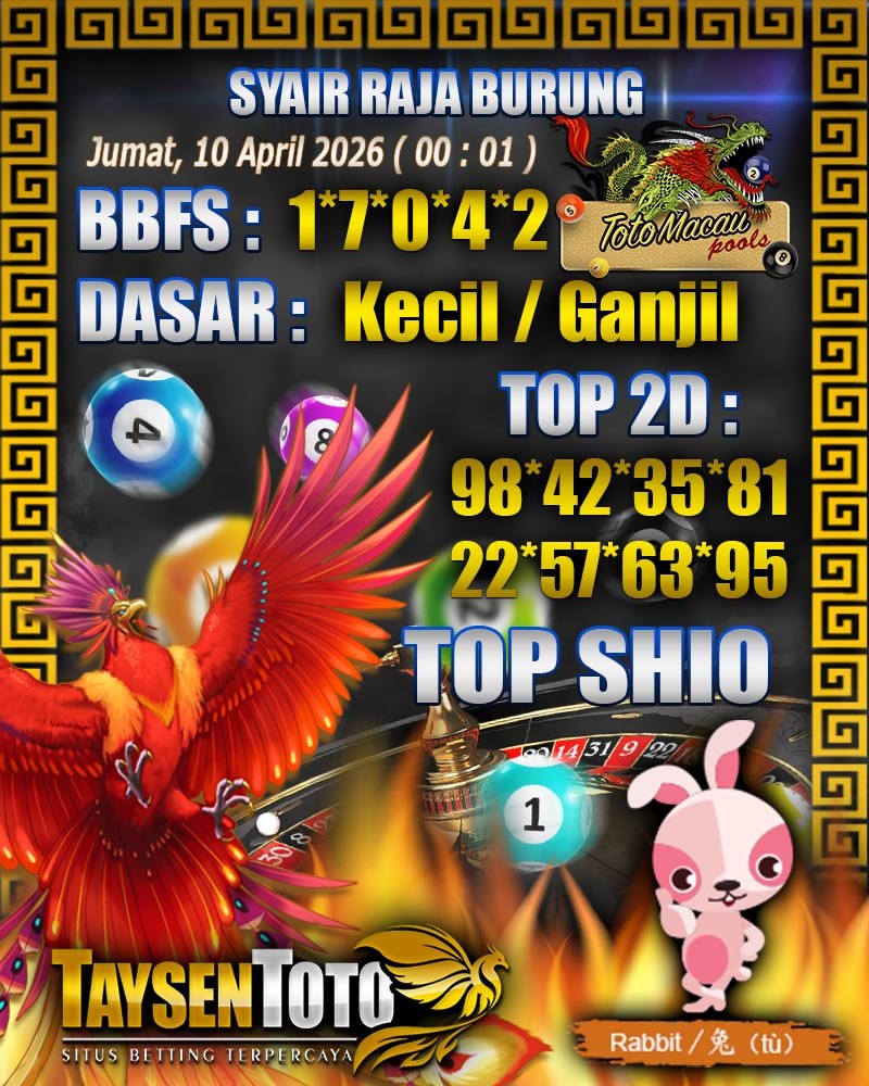 Syair Raja Burung Toto Macau Hari Jumat, 10 April 2026| 00 : 01 WIB