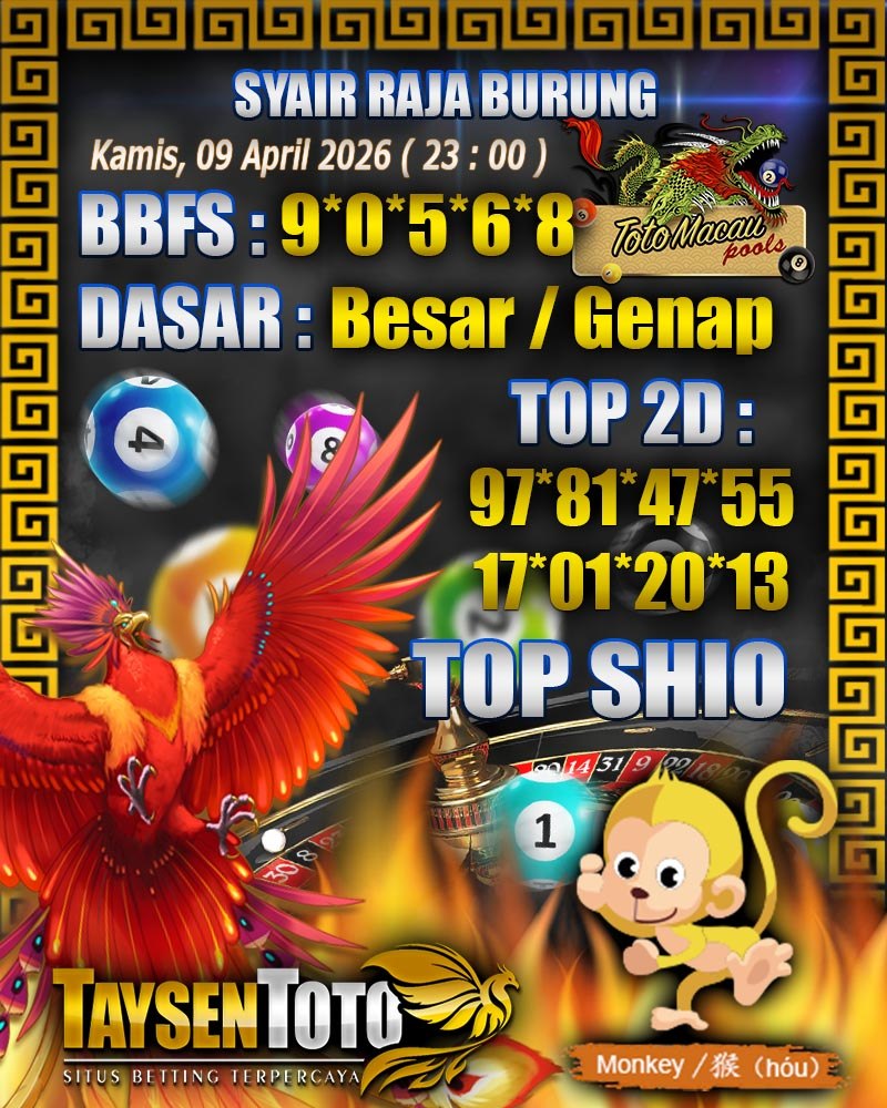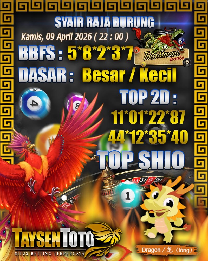 Syair Raja Burung Toto Macau Hari Kamis, 09 April 2026| 23 : 00 WIB