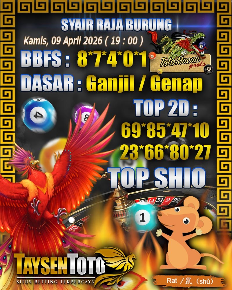 Syair Raja Burung Toto Macau Hari Kamis, 09 April 2026| 19 : 00 WIB