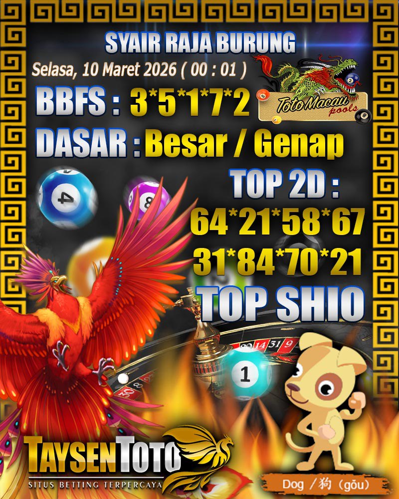 Syair Raja Burung Toto Macau Hari Selasa, 10 Maret 2026| 00 : 01 WIB