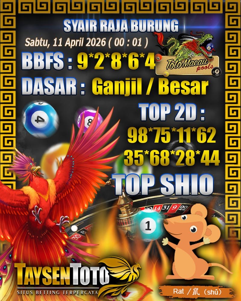 Syair Raja Burung Toto Macau Hari Sabtu, 11 April 2026| 00 : 01 WIB