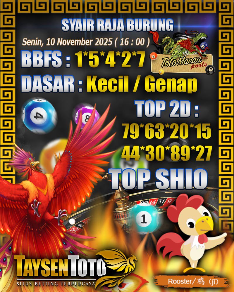 Syair Raja Burung Toto Macau Hari Senin, 10 November 2025| 23 : 00 WIB