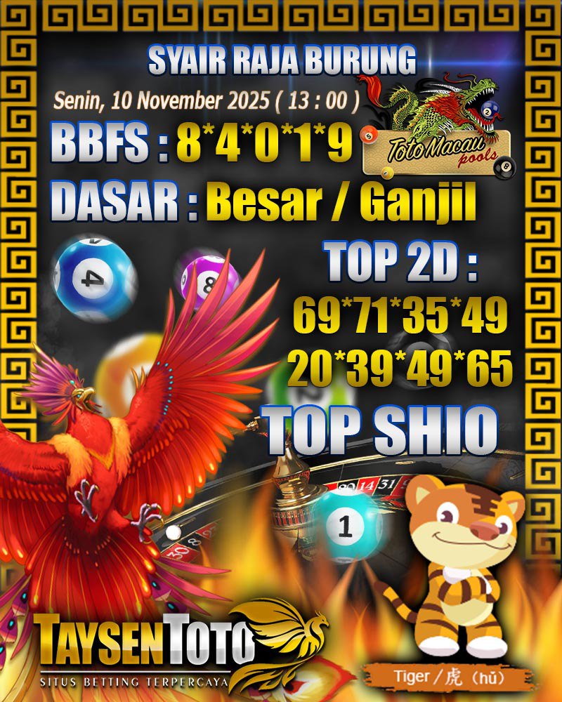 Syair Raja Burung Toto Macau Hari Senin, 10 November 2025| 13 : 00 WIB