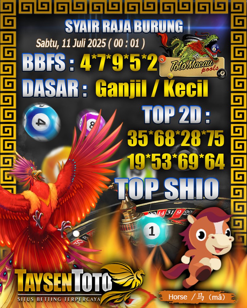 Syair Raja Burung Toto Macau Hari, Jumat, 11 Juli 2025| 23 : 00 WIB