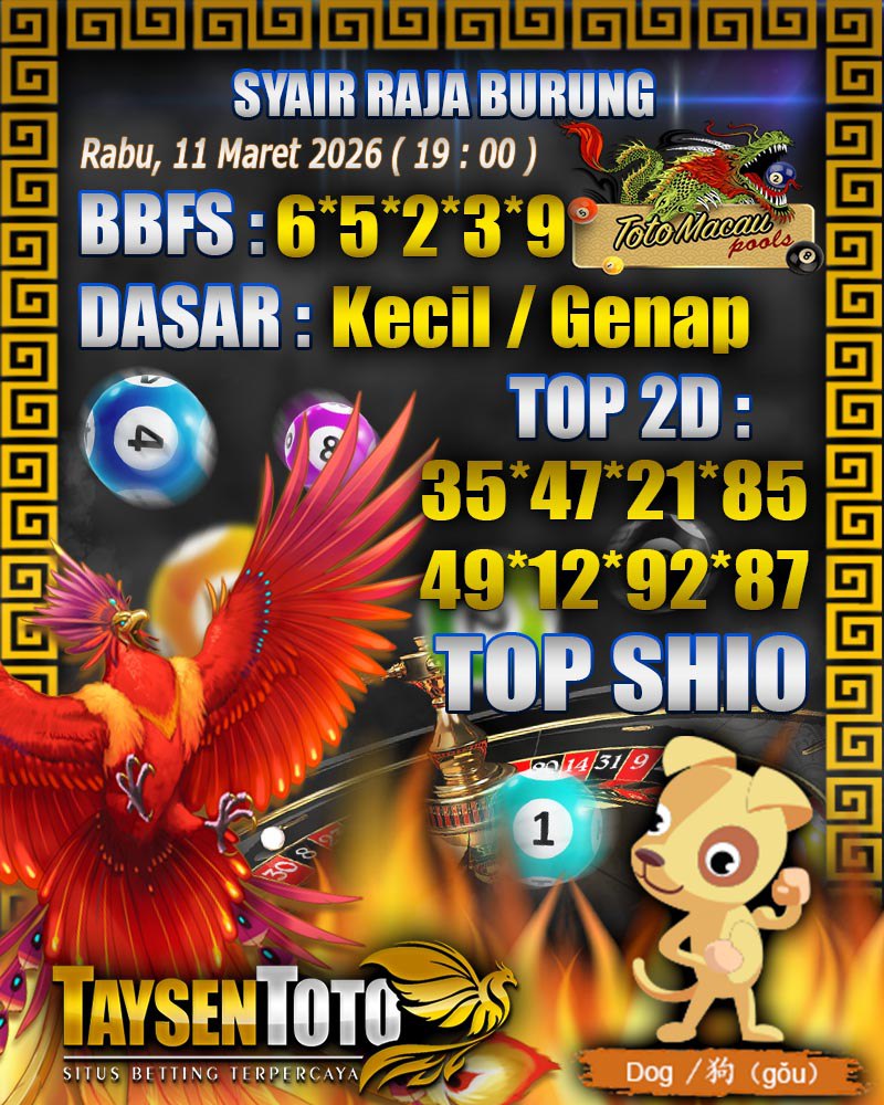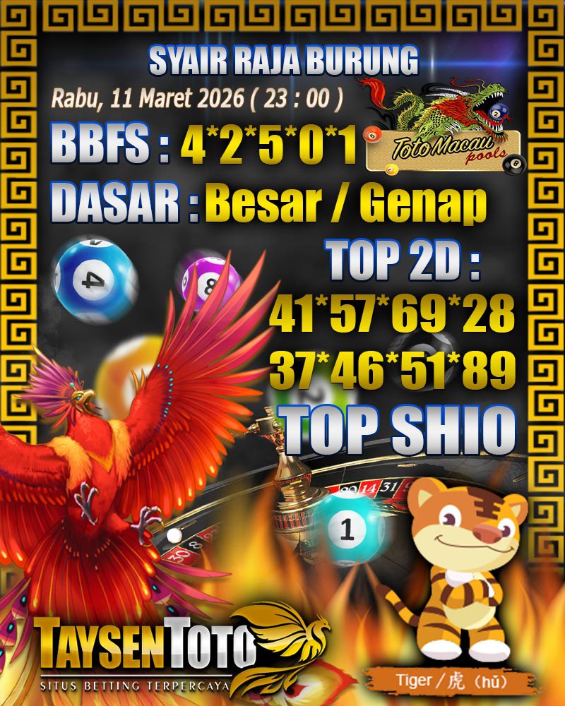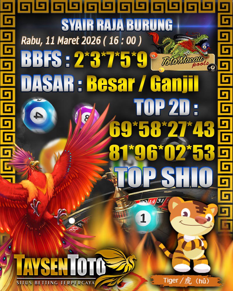Syair Raja Burung Toto Macau Hari Rabu, 11 Maret 2026| 23 : 00 WIB