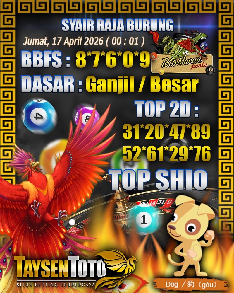 Syair Raja Burung Toto Macau Hari Jumat, 17 April 2026| 00 : 01 WIB