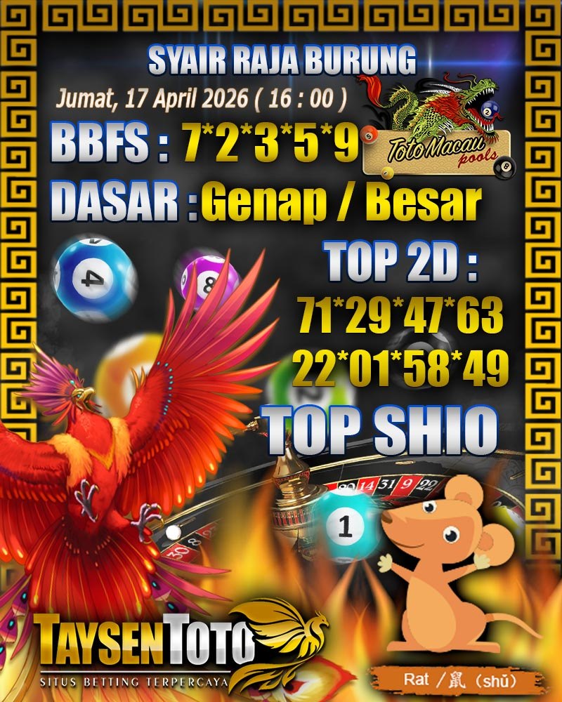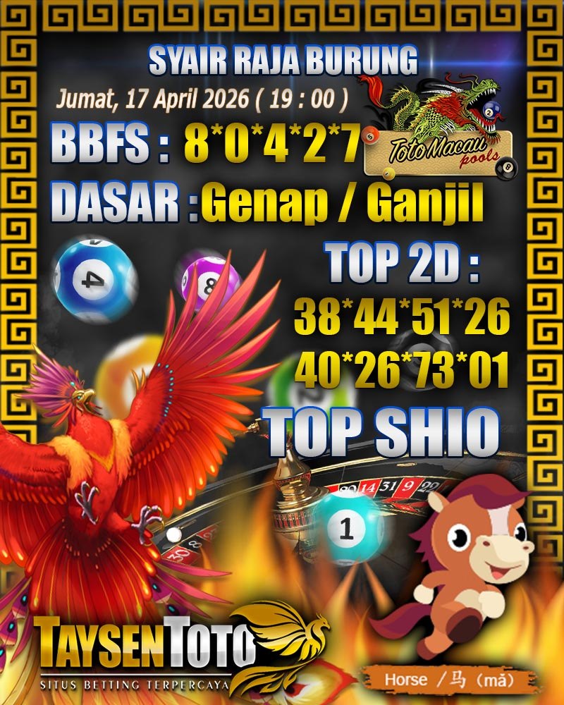 Syair Raja Burung Toto Macau Hari Jumat, 17 April 2026| 19 : 00 WIB