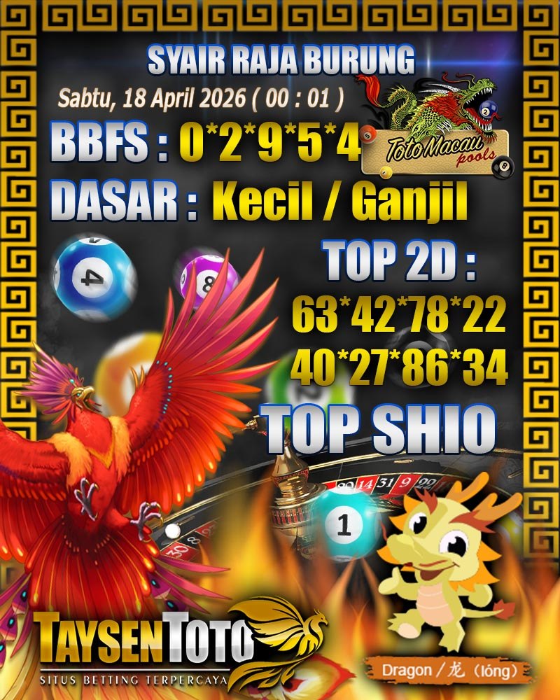 Syair Raja Burung Toto Macau Hari Sabtu, 18 April 2026| 00 : 01 WIB