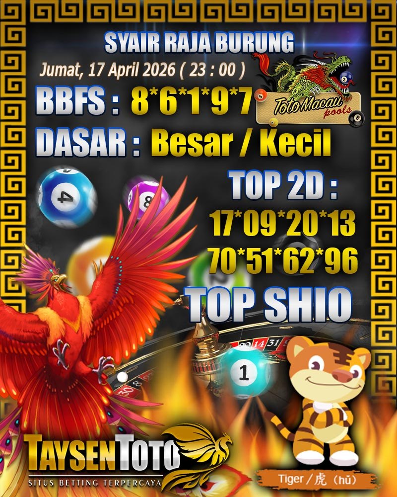 Syair Raja Burung Toto Macau Hari Jumat, 17 April 2026| 23 : 00 WIB