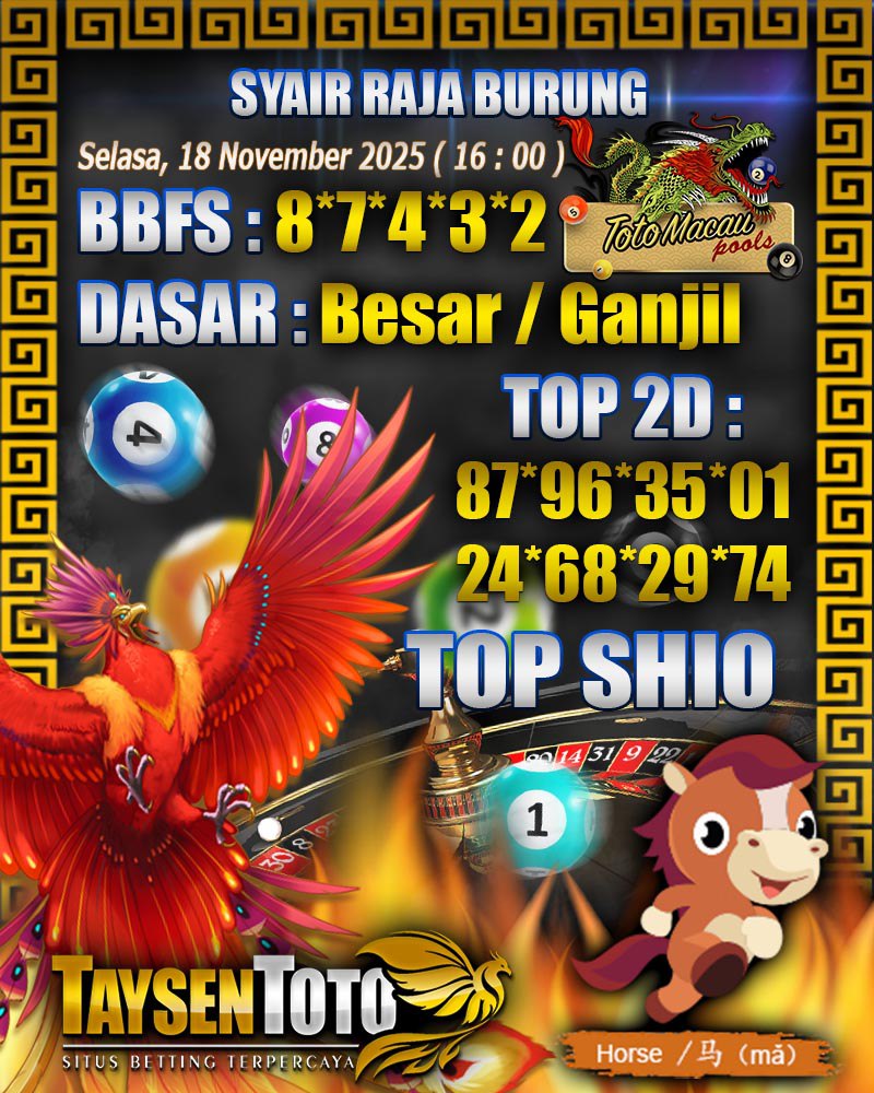 Syair Raja Burung Toto Macau Hari Selasa, 18 November 2025| 13 : 00 WIB