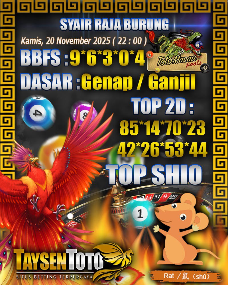 Syair Raja Burung Toto Macau Hari Kamis, 20 November 2025| 13 : 00 WIB