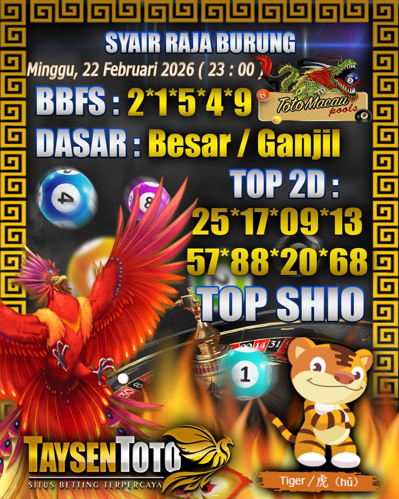 Syair Raja Burung Toto Macau Hari Minggu, 22 Februari 2026| 23 : 00 WIB