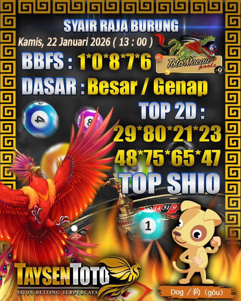 Syair Raja Burung Toto Macau Hari Kamis, 22 Januari 2026| 13 : 00 WIB