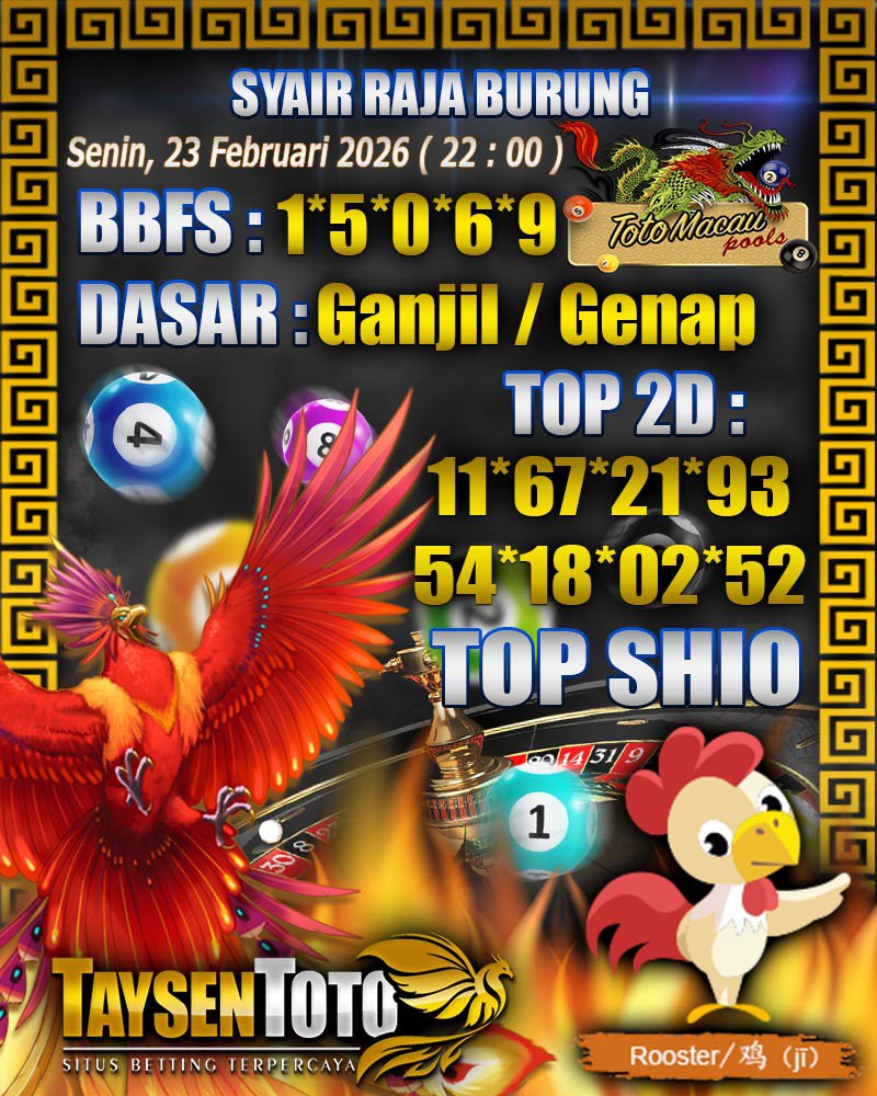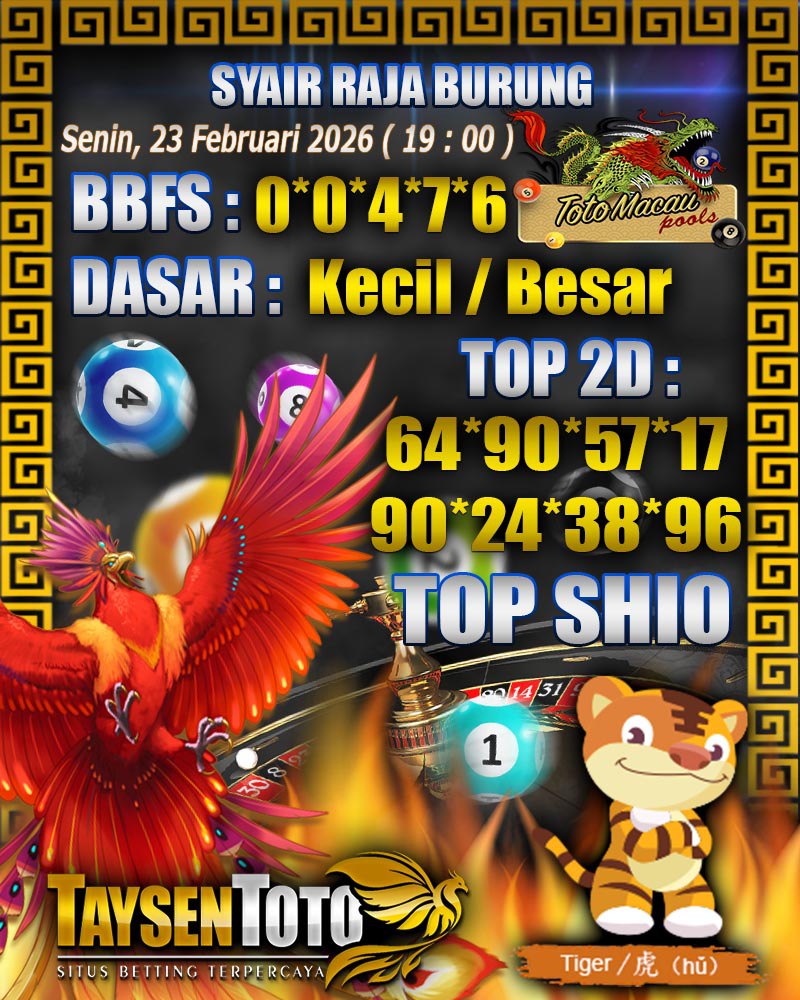 Syair Raja Burung Toto Macau Hari Senin, 23 Februari 2026| 23 : 00 WIB