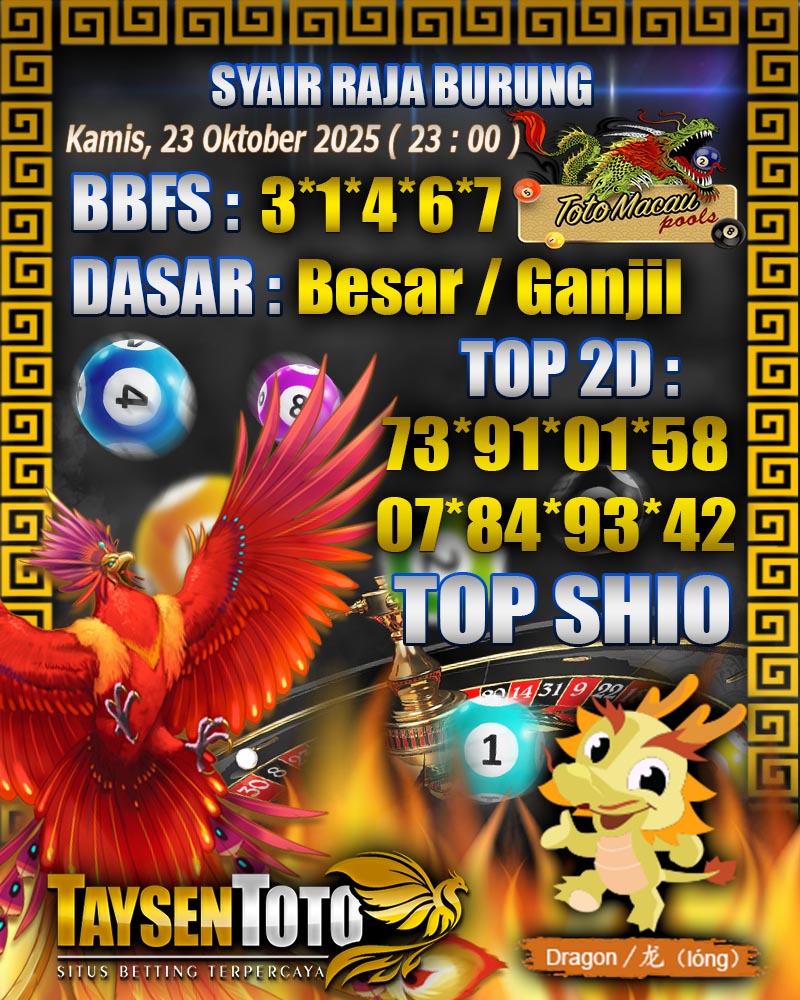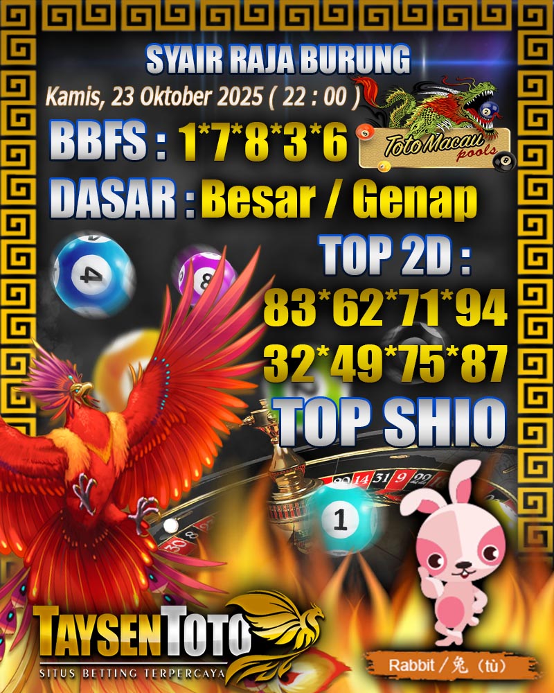 Syair Raja Burung Toto Macau Hari Kamis, 23 Oktober 2025| 19 : 00 WIB