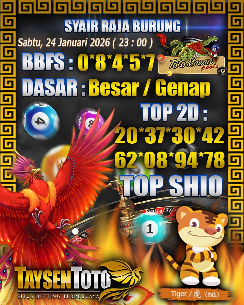 Syair Raja Burung Toto Macau Hari Sabtu, 24 Januari 2026| 23 : 00 WIB