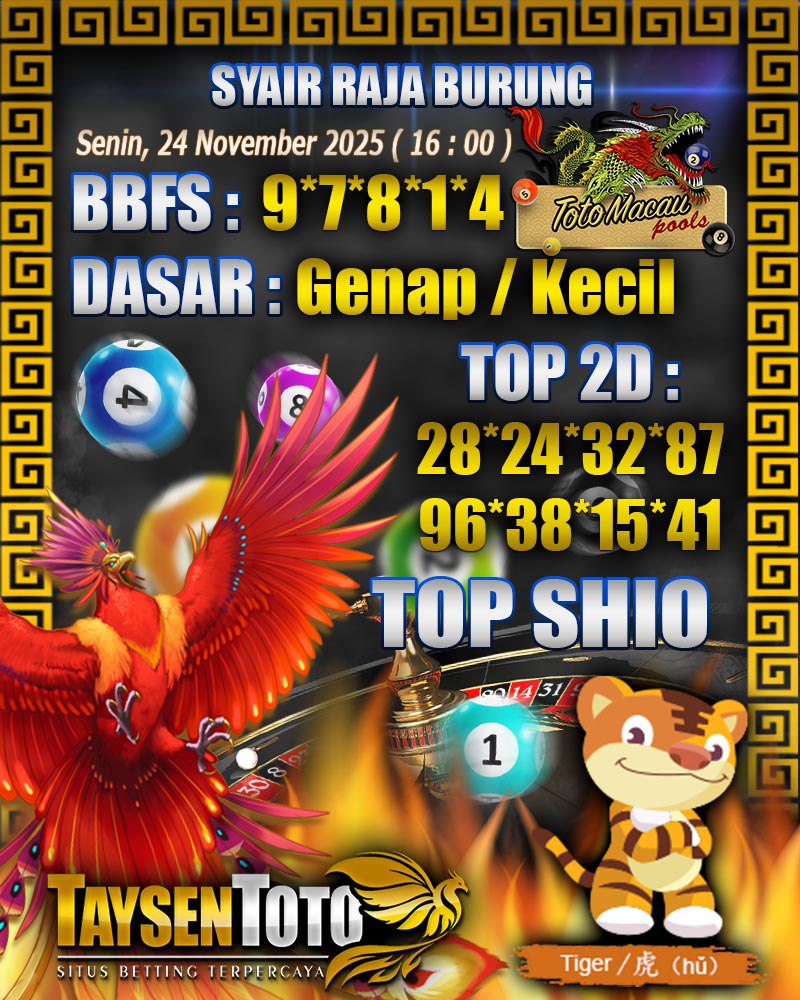Syair Raja Burung Toto Macau Hari Senin, 24 November 2025| 16 : 00 WIB