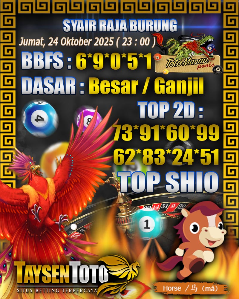 Syair Raja Burung Toto Macau Hari Jumat, 24 Oktober 2025| 22 : 00 WIB
