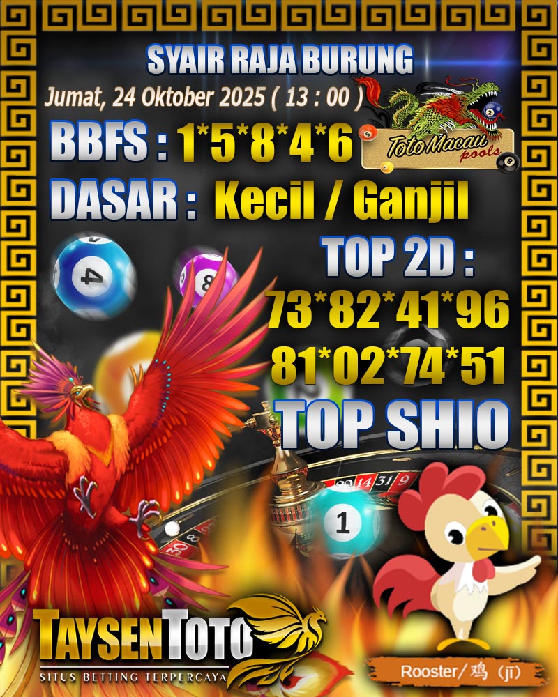 Syair Raja Burung Toto Macau Hari Jumat, 24 Oktober 2025| 16 : 00 WIB
