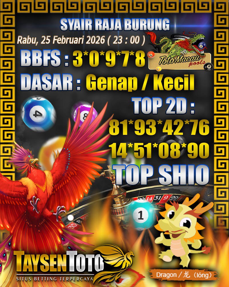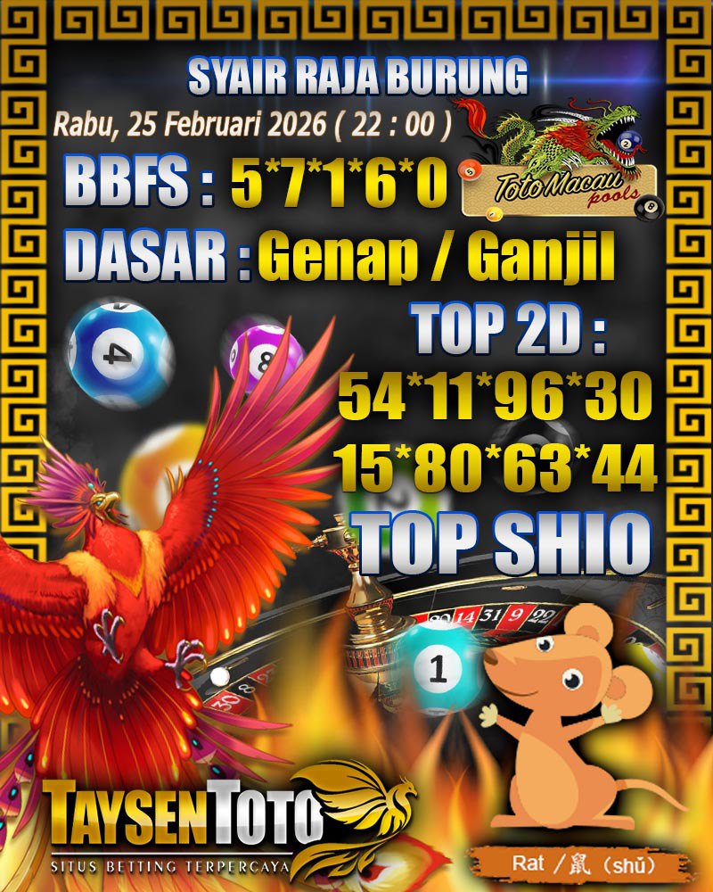 Syair Raja Burung Toto Macau Hari Rabu, 25 Februari 2026| 23 : 00 WIB
